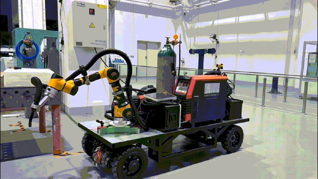 设想上,基于具身智能设想,它摒弃保守设备的笨沉机身,采用轻量化布局,全体简便易携,共同矫捷的挪动底盘,实现“随搬随用、即停即焊”,焊接工做半径笼盖600-1650mm。高空功课的钢布局框架,仍是多品种小批量出产的柔性出产线,都能矫捷穿越,无需复杂安拆调试,大幅降低场景。