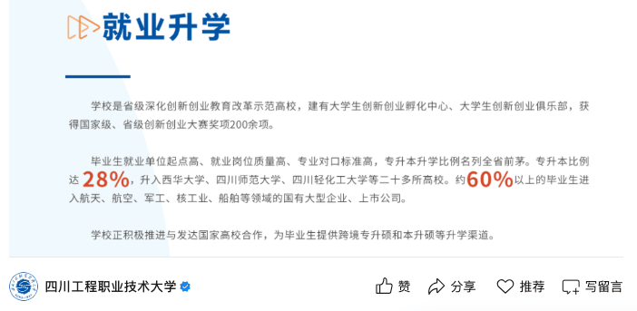 学校最新的就业数据显示,核工业、船舶等范畴的国有大型企业、上市公司就业!